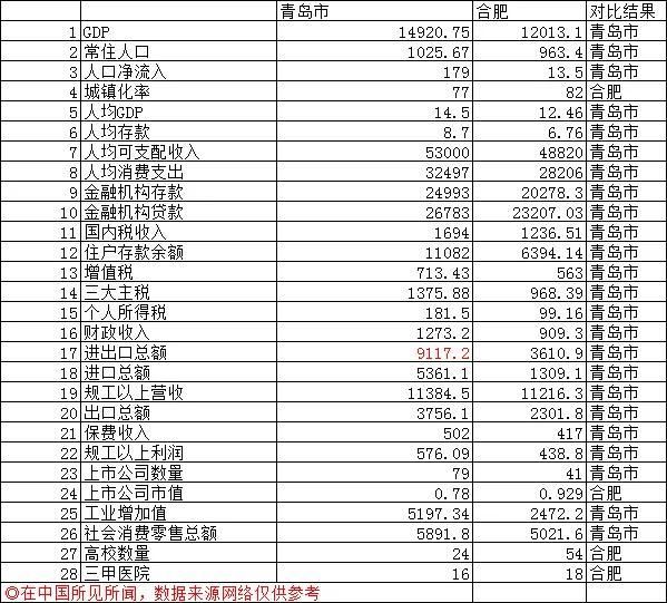 人均可支配收入方面青岛市53000元合肥则是48820元青岛市胜出
