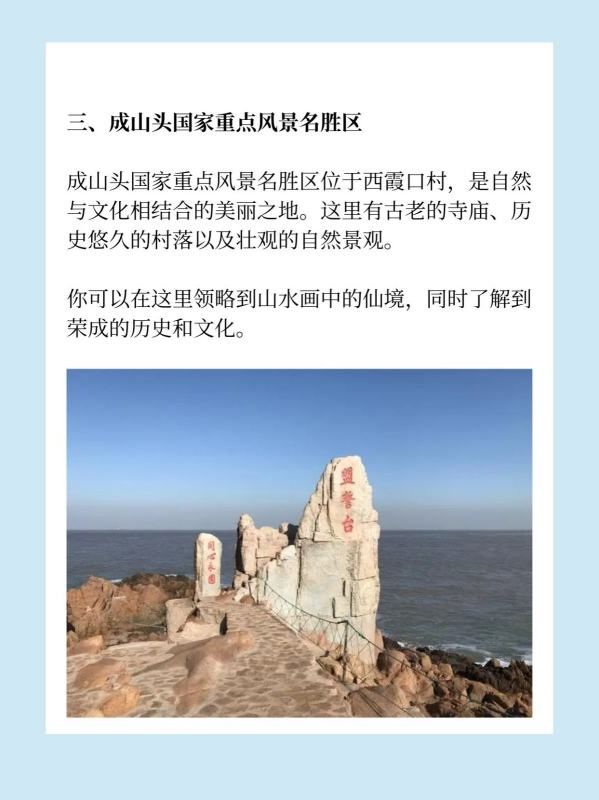 荣成,位于山东省威海市,是一个拥有迷人海滨风光和丰富文化底蕴的旅游胜地。无论你是寻求自然景观、文化探索还是休闲度假,荣成都有着多样的景点和活动,以下是必去景点的详细介绍: