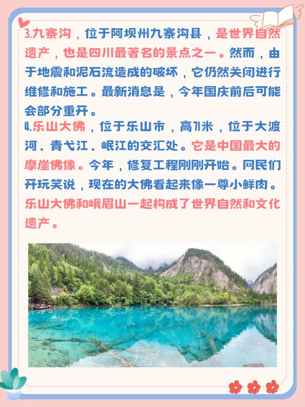 3.九寨沟,是世界自然遗产,也是四川最著名的景点之一。