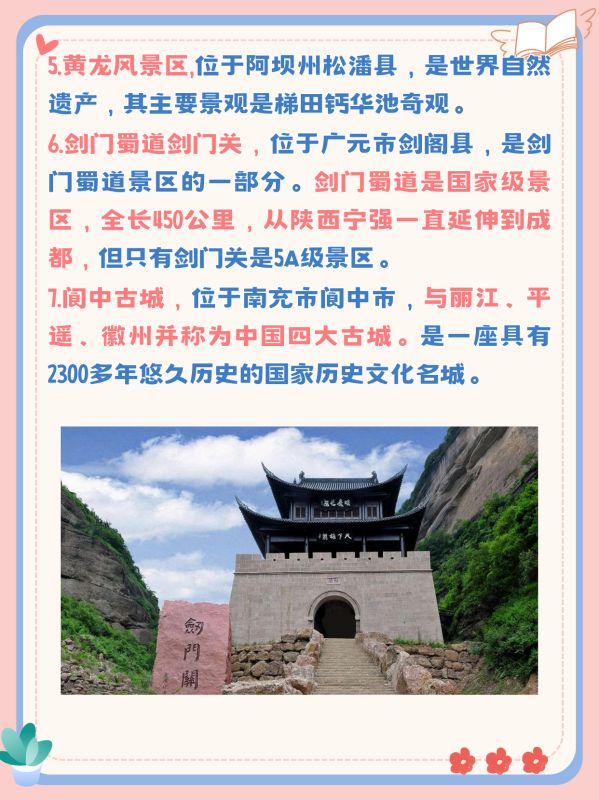 6.剑门蜀道剑门关,剑门蜀道是国家级景区,全长450公里,只有剑门关是5A级景区。