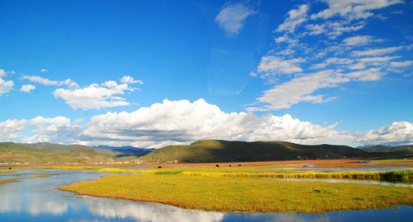 纳帕海四季景致各有特色,夏末秋初是雨季,此时水量较大,纳帕海是一大片湖泊,湖边是一小片草场。