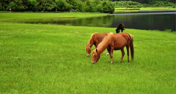湖畔是一片绵延的高原牧场,春夏野花盛开,秋天层林尽染,景色绝美。