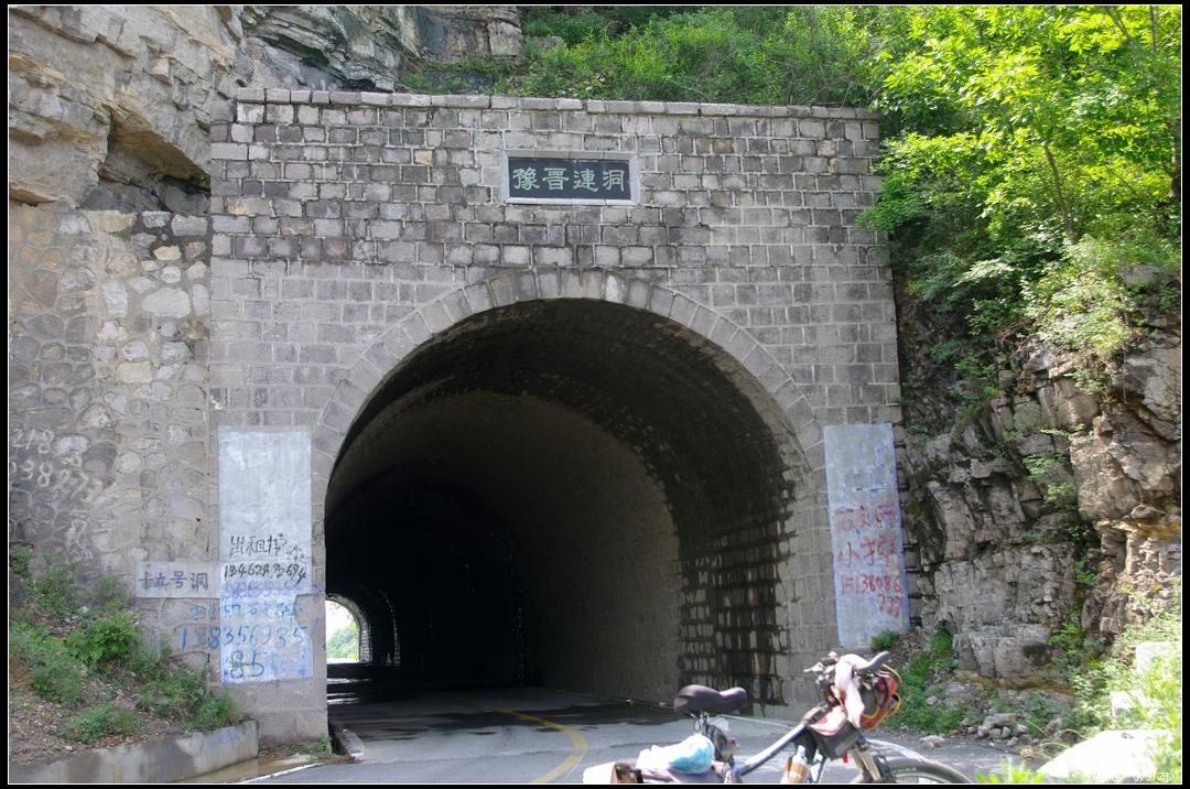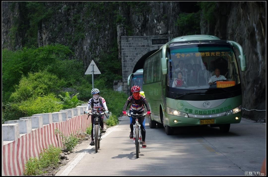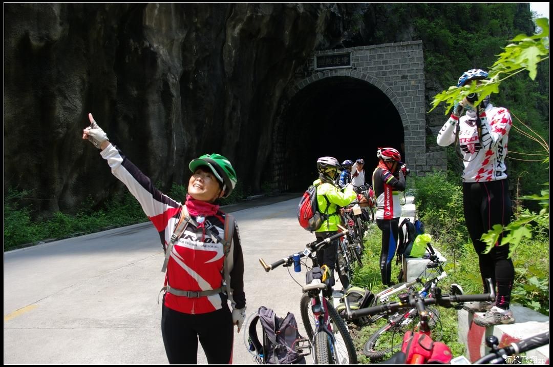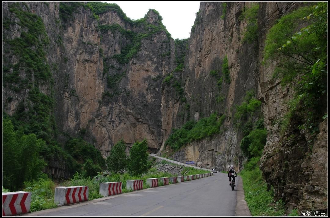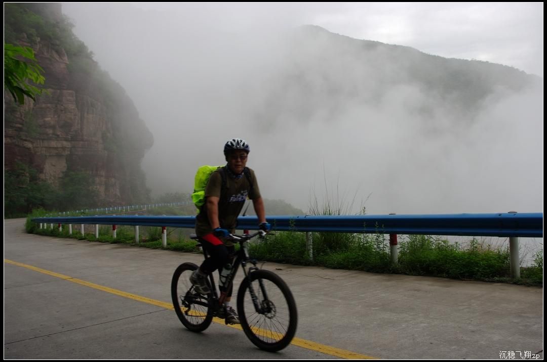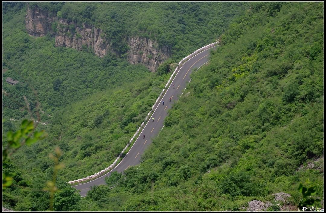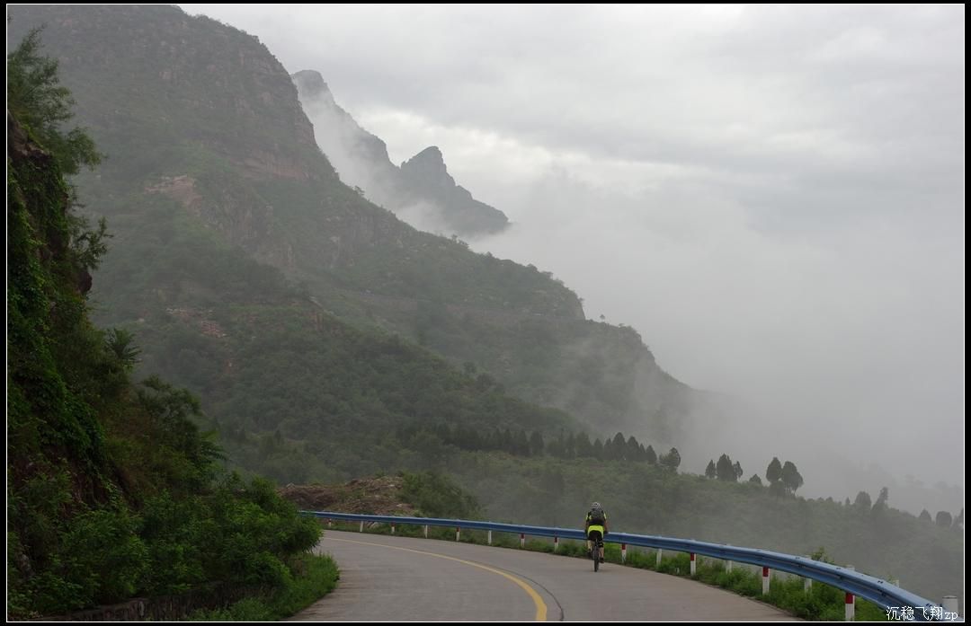 又到端午假,“骑兵营”的进山路线让我眼睛一亮,南太行山中的凤凰欢乐谷和骑下云台山,都是我未曾涉足的新地方。新地方,就有吸引力,报名,去!2013年6月10日和11日,“骑兵营”的26人骑山队伍从薄壁宝泉水库起,到云台山入口的方庄止,上上下下,快快乐乐,实实在在地在南太行山里用自行车画了一个大“U”字母。第一天赶上了个欲雨未雨的朦胧天,一些个山头云遮雾绕,往上骑行如进仙境,让在晴天里骑过两遍的“毕业坡”有了不一样的迷人景象。宝泉、潭头一线也云气蒸腾、山溪流淌。这种云雾里的山行,不仅仅是迷人的风光,更难得的是阴凉不晒,这就少了许多攀爬时的汗水和毒日头下的眩晕。尽管第一天的大半路程是沿着山西陵川马圪当大峡谷的山路一直向上,还是似有似无的北风顶着,骑得很吃力,但仍然将曾经过往的地方一骑而过,武家湾、孤石村、双底村(老平家的一碗面条当了午饭)和横水村。再向上是四义村和峰顶上的拱水粮站,这是我的新路程,而拱水粮站则是我们此程的折返点。此处海拔1300米,也是此程的高点了。折返就意味着掉头向南、向下了。果然,马上就是一段不得不紧握刹车的直陡的大下坡,一直下到门河河谷,下到凤凰欢乐谷的北大门。凤凰欢乐谷是开发成的景区,门票50元,想不到我的油田摄影证在此派上了用场,这还是第一次。在我眼里,好风光在路上,尤其在高险的路上,景区的风景都沾染上了多多少少的人工痕迹,不是太喜欢。连骑带推,还得搬着,总算出了景区,入住凤凰村。可喜可贺得是,全部人马都在天黑前到达了,连一直在后的“柳絮”也机智的求助陵川潞城镇的警察,被连车带人给送了过来,省力少跑了一半的路程。入夜的高山上真冷啊,不过我们在人民公社大食堂的聚餐很热烈,还让我尝到了久违的牛肉和豆腐的真正味道。第二天迎来个湛蓝碧空的大晴日,太行山又是一幅壮阔的画景。亮丽的光线洒在起伏的绿山上,明暗有致,层次分明,显示出另一种的高爽美!骑上高高在上的陵川夺火乡,就骑上了陵川下到修武的陵修公路上了。这条连接两省的高山公路,还真是修得让骑车人留恋,平洁规整不说,光是这份清净和风光,就无与伦比。下来近50公里的路程就基本上不用脚蹬了,把准方向,握住刹车,就边下边看风景吧。与云台山一脉相承的“上云台”就在上面,只不过山下河南的“云台”游客火爆,山上山西的“云台”门可罗雀。为此,两地还曾有景区的归属之争。当望见高顶有庙的茱萸峰时,也就该下云台进河南了,想象不到的是又一种险奇的大美,就在后面等待着大家。茱萸峰下,游客熙熙攘攘,景区的区间车来来往往,置身其间,我们反而显得另类了。如果说在山西的高山之上,感觉到的是高远壮阔,那么南太行直跌到大平原的河南一段,就呈现出了惊心动魄的气势了。崖壁峭立,峥嵘嵯峨,让人望而生畏,而今天我们要骑下的叠彩洞就开在这悬崖峭壁之中。这一段奇绝的叠彩洞,是由大小23条洞,首尾相连总长4000多米组成的。它是由修武县土专家张有臣设计规划的。在外只见一排巨大的阶梯层层递上,在洞里都是180度的转弯和 45度以上的爬坡。这就是景区有名的“暗十八盘”,勤劳的人民用十二年的时间修建了这条路。骑在洞中,尤其在拐弯的地方,真正体会到暗无天日的可怕来了!幸亏我们是下山,否则不可想象!等下到云台山景区,回望刚刚下来的山峰,感到真是从天而降。中午,早早结束了预定的骑程,也早早的坐车回家了!两天骑车共136公里,花费203元。