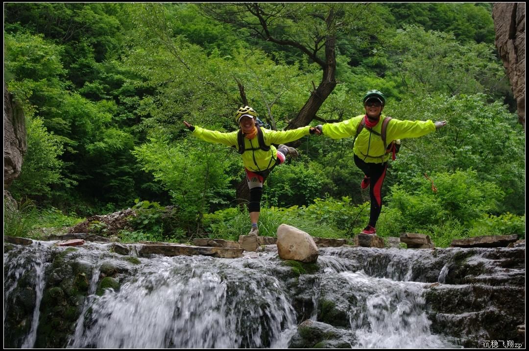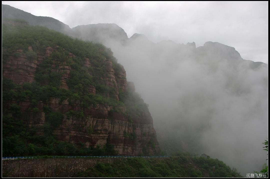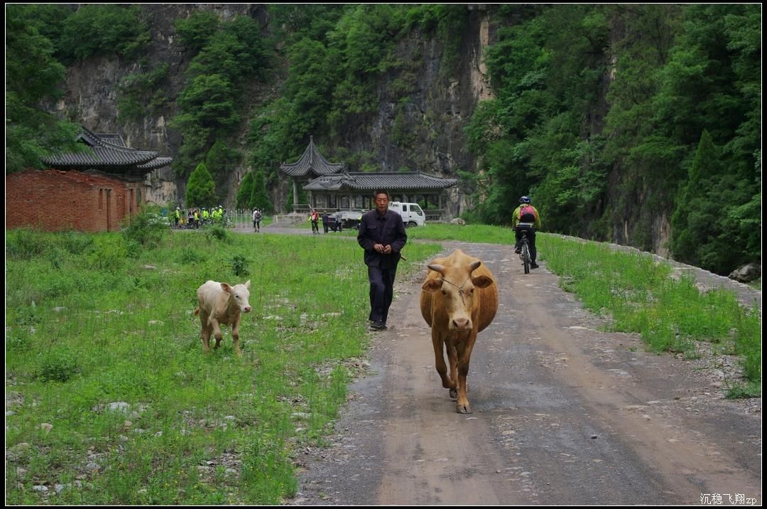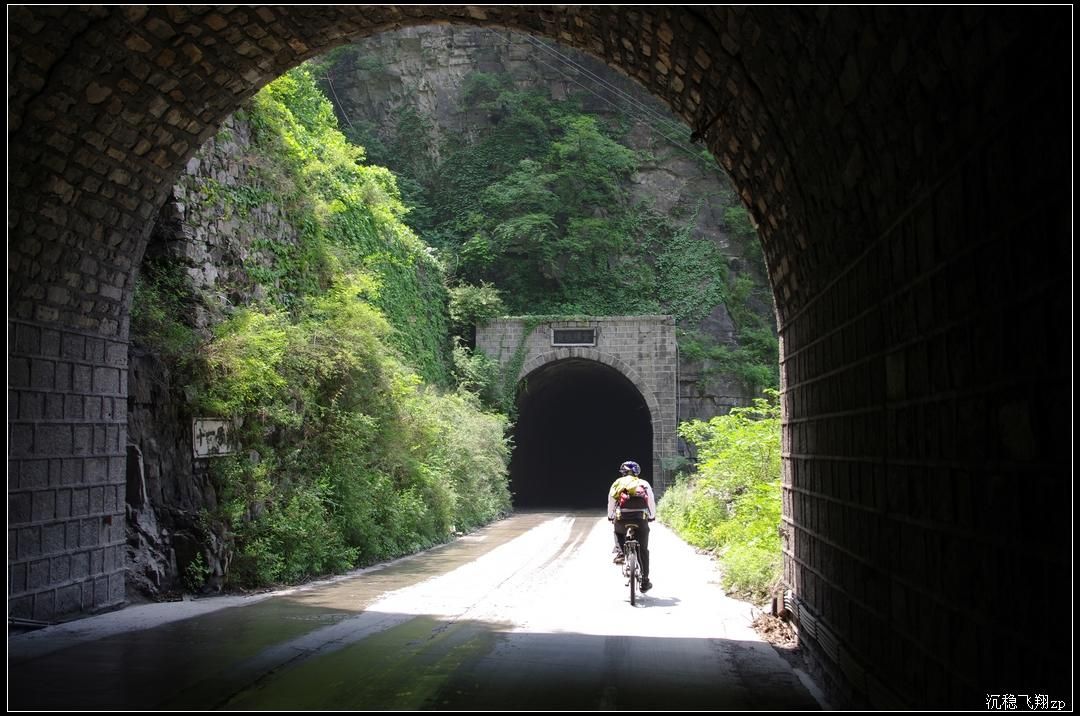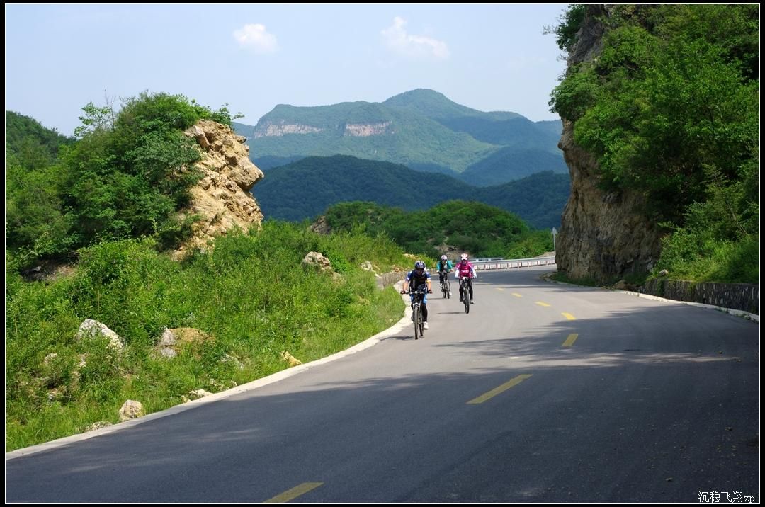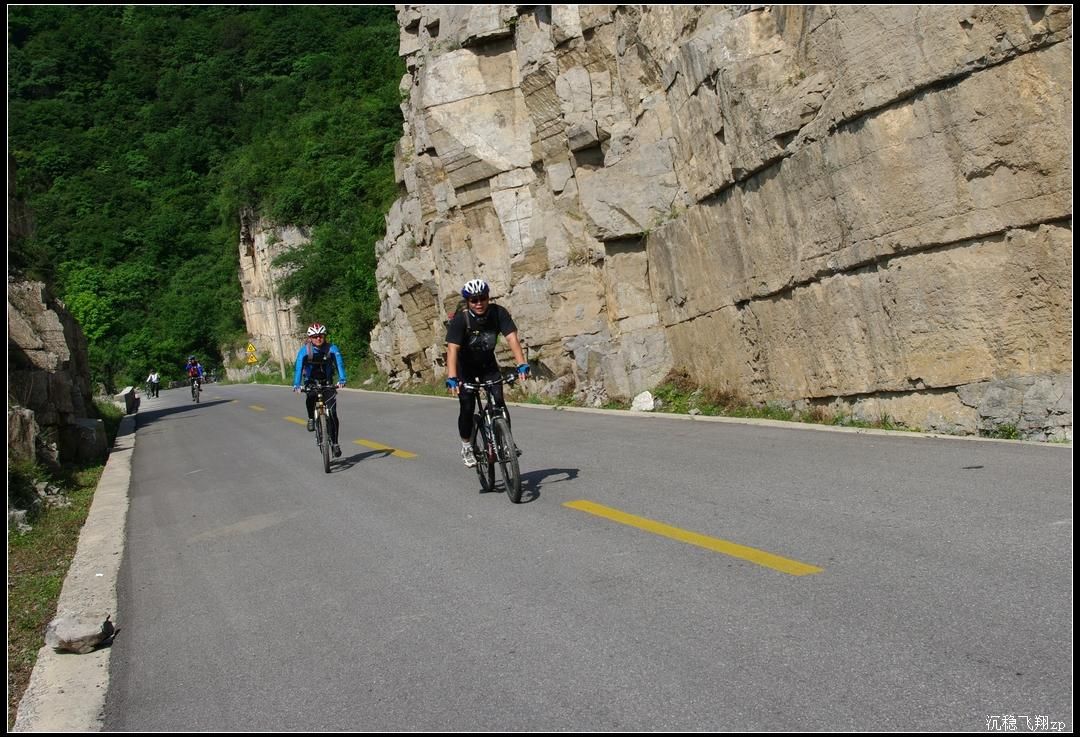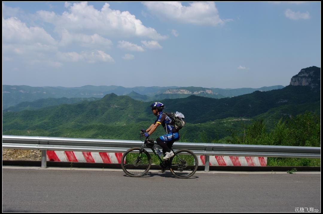 又到端午假,“骑兵营”的进山路线让我眼睛一亮,南太行山中的凤凰欢乐谷和骑下云台山,都是我未曾涉足的新地方。新地方,就有吸引力,报名,去!2013年6月10日和11日,“骑兵营”的26人骑山队伍从薄壁宝泉水库起,到云台山入口的方庄止,上上下下,快快乐乐,实实在在地在南太行山里用自行车画了一个大“U”字母。第一天赶上了个欲雨未雨的朦胧天,一些个山头云遮雾绕,往上骑行如进仙境,让在晴天里骑过两遍的“毕业坡”有了不一样的迷人景象。宝泉、潭头一线也云气蒸腾、山溪流淌。这种云雾里的山行,不仅仅是迷人的风光,更难得的是阴凉不晒,这就少了许多攀爬时的汗水和毒日头下的眩晕。尽管第一天的大半路程是沿着山西陵川马圪当大峡谷的山路一直向上,还是似有似无的北风顶着,骑得很吃力,但仍然将曾经过往的地方一骑而过,武家湾、孤石村、双底村(老平家的一碗面条当了午饭)和横水村。再向上是四义村和峰顶上的拱水粮站,这是我的新路程,而拱水粮站则是我们此程的折返点。此处海拔1300米,也是此程的高点了。折返就意味着掉头向南、向下了。果然,马上就是一段不得不紧握刹车的直陡的大下坡,一直下到门河河谷,下到凤凰欢乐谷的北大门。凤凰欢乐谷是开发成的景区,门票50元,想不到我的油田摄影证在此派上了用场,这还是第一次。在我眼里,好风光在路上,尤其在高险的路上,景区的风景都沾染上了多多少少的人工痕迹,不是太喜欢。连骑带推,还得搬着,总算出了景区,入住凤凰村。可喜可贺得是,全部人马都在天黑前到达了,连一直在后的“柳絮”也机智的求助陵川潞城镇的警察,被连车带人给送了过来,省力少跑了一半的路程。入夜的高山上真冷啊,不过我们在人民公社大食堂的聚餐很热烈,还让我尝到了久违的牛肉和豆腐的真正味道。第二天迎来个湛蓝碧空的大晴日,太行山又是一幅壮阔的画景。亮丽的光线洒在起伏的绿山上,明暗有致,层次分明,显示出另一种的高爽美!骑上高高在上的陵川夺火乡,就骑上了陵川下到修武的陵修公路上了。这条连接两省的高山公路,还真是修得让骑车人留恋,平洁规整不说,光是这份清净和风光,就无与伦比。下来近50公里的路程就基本上不用脚蹬了,把准方向,握住刹车,就边下边看风景吧。与云台山一脉相承的“上云台”就在上面,只不过山下河南的“云台”游客火爆,山上山西的“云台”门可罗雀。为此,两地还曾有景区的归属之争。当望见高顶有庙的茱萸峰时,也就该下云台进河南了,想象不到的是又一种险奇的大美,就在后面等待着大家。茱萸峰下,游客熙熙攘攘,景区的区间车来来往往,置身其间,我们反而显得另类了。如果说在山西的高山之上,感觉到的是高远壮阔,那么南太行直跌到大平原的河南一段,就呈现出了惊心动魄的气势了。崖壁峭立,峥嵘嵯峨,让人望而生畏,而今天我们要骑下的叠彩洞就开在这悬崖峭壁之中。这一段奇绝的叠彩洞,是由大小23条洞,首尾相连总长4000多米组成的。它是由修武县土专家张有臣设计规划的。在外只见一排巨大的阶梯层层递上,在洞里都是180度的转弯和 45度以上的爬坡。这就是景区有名的“暗十八盘”,勤劳的人民用十二年的时间修建了这条路。骑在洞中,尤其在拐弯的地方,真正体会到暗无天日的可怕来了!幸亏我们是下山,否则不可想象!等下到云台山景区,回望刚刚下来的山峰,感到真是从天而降。中午,早早结束了预定的骑程,也早早的坐车回家了!两天骑车共136公里,花费203元。