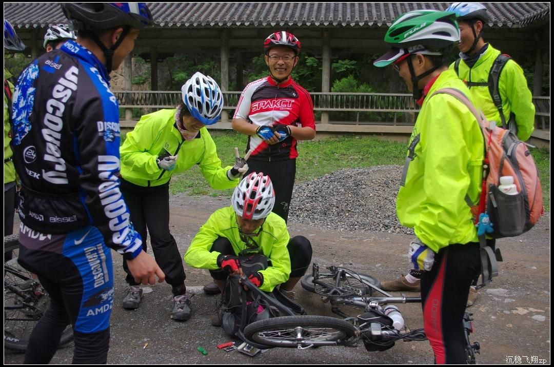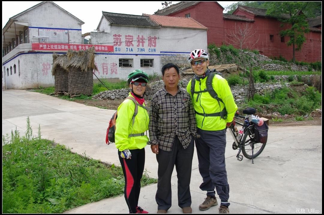 掉头下山,在苏家井村和村支书合上了影。这源于骑友“虎妞”的车子有了问题,村支书给联系了汽车送一程