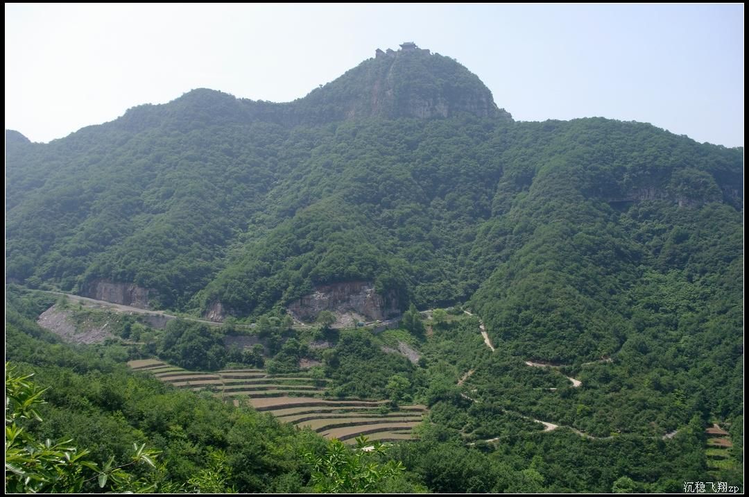 终于从高处望见了海拔1308米的茱萸峰,山巅的建筑是真武大帝庙