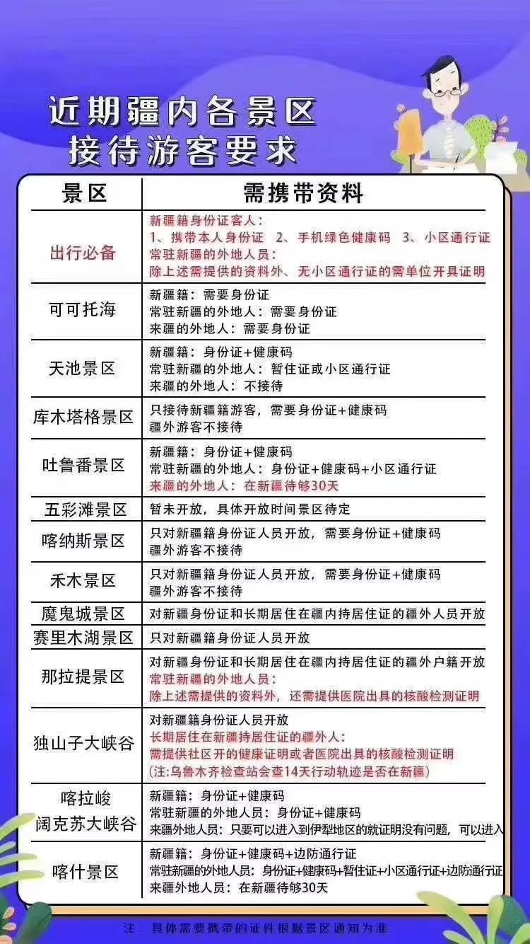 新疆目前有名的景区,大多不对内地来新疆旅行的朋友开放,只对新疆本地人和外地持暂住证或已入疆30天人员让进景区。