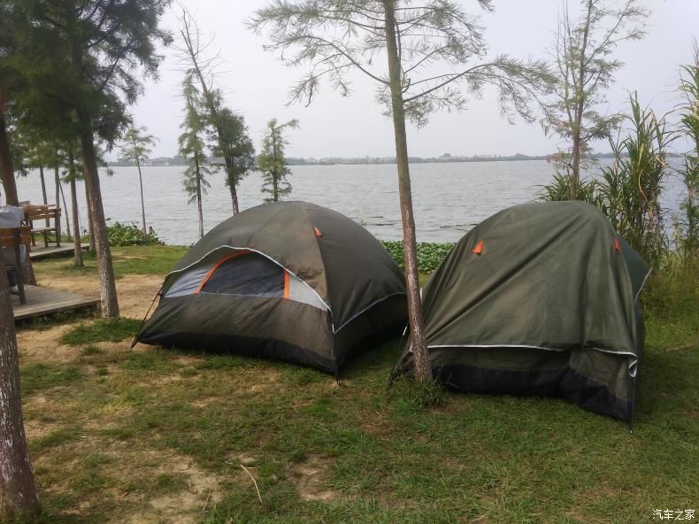 2. 瑶湖郊野森林公园的月牙型湖湾边有一块临湖的空地,这是公园里专门的烧烤区。在这里烧烤是景区一特色玩法。公园内只有一家店可租赁烧烤设备,需要提前预约,这家店还可以租自行车和帐篷。邀上三五朋友,自带食材,租个烤架和帐篷,烤烤烧烤,搭个帐篷露营,看美景尝美食,边吃边玩,不亦乐乎!