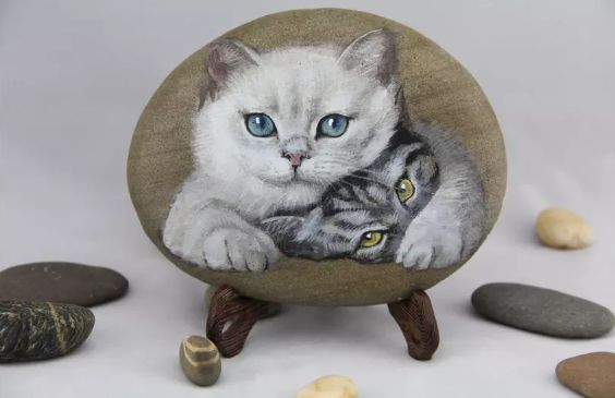 石头猫是台湾艺术家李鸿祥老师(HenryLee)独创的石头彩绘艺术,以对猫的浓厚感情,将猫栩栩如生的姿态细细描绘于石头上,可在掌上把玩或作为摆设,猫眼睛以特别研制的颜料料制,精灵存神,是为全球首创的艺术杰作。每款彩绘石头猫均由李先生亲手绘制,独一无二。每只动物各有不同的名字、品种、姿态,逗趣可爱。
