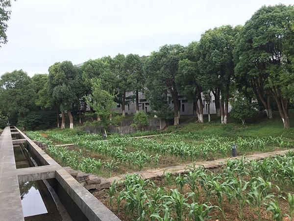 在校园建设中,山北通过沿山脚的水池建立水景,而山南与水的关系更加密切,建筑学院的四栋楼都是前山后水的布置,而设计学院那栋蜿蜒的大房子朝山面是一条人工灌溉的水渠和大片的田地,更有趣的是服装系的楼朝山面是一条高低上下的廊子,通过上下起伏的行走引向对远处象山的对望,背山面又是一汪水,太湖房就从水里生长出来。