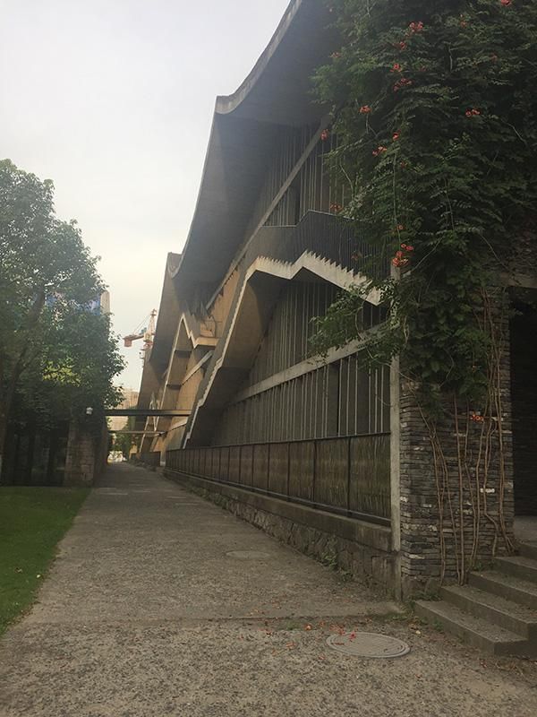 象山校区刚造好的时候在业内有个笑话“在杭州如果要看烂尾楼,就去美院象山校区”。刚建好的象山校区没有茂密的树丛,立面也是光秃秃的,没有树木的相映照,又在立面上用的旧砖旧瓦,新的木板和旧的砖瓦搭配在一起,建筑直接展现在人面前,难免觉得奇怪。而现在象山校园使用了十年了,时间茂密了树木,旧了材料,在建筑上也刻上了时间的痕迹。除了最高那幢玻璃房子外,每栋教学楼都一定有一面长满爬山虎的墙,夏夜的傍晚,微风轻拂,爬山虎变沙沙作响,在建筑立面上轻轻地拍打,原本有棱有角的立面就变得温柔起来。象山的建筑似乎有种使用年数越久越耐看的气质,好像养出了“包浆”。