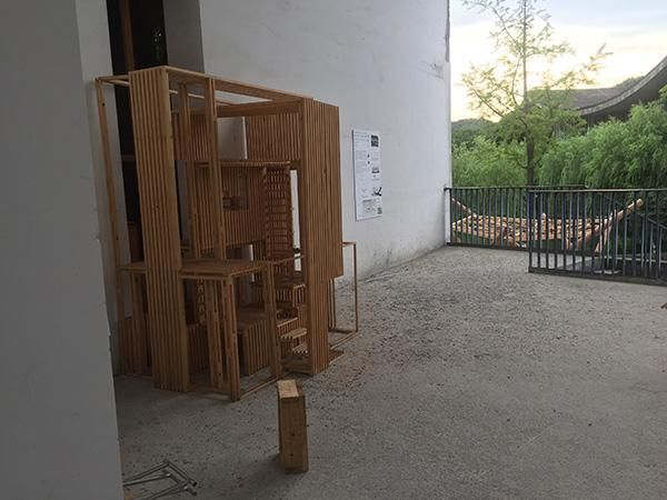 然而这种浪费空间的布置拓展了对教室外空间的使用。比如,13号楼一层太湖房前成了学生做大型建构作业的好场地,11号楼的坡道成为同学们上渲染课时必选景点之一。那些被浪费掉的空间被当做展场和试验场,放置作业,而基于这些空间做装置,别有一番风味。