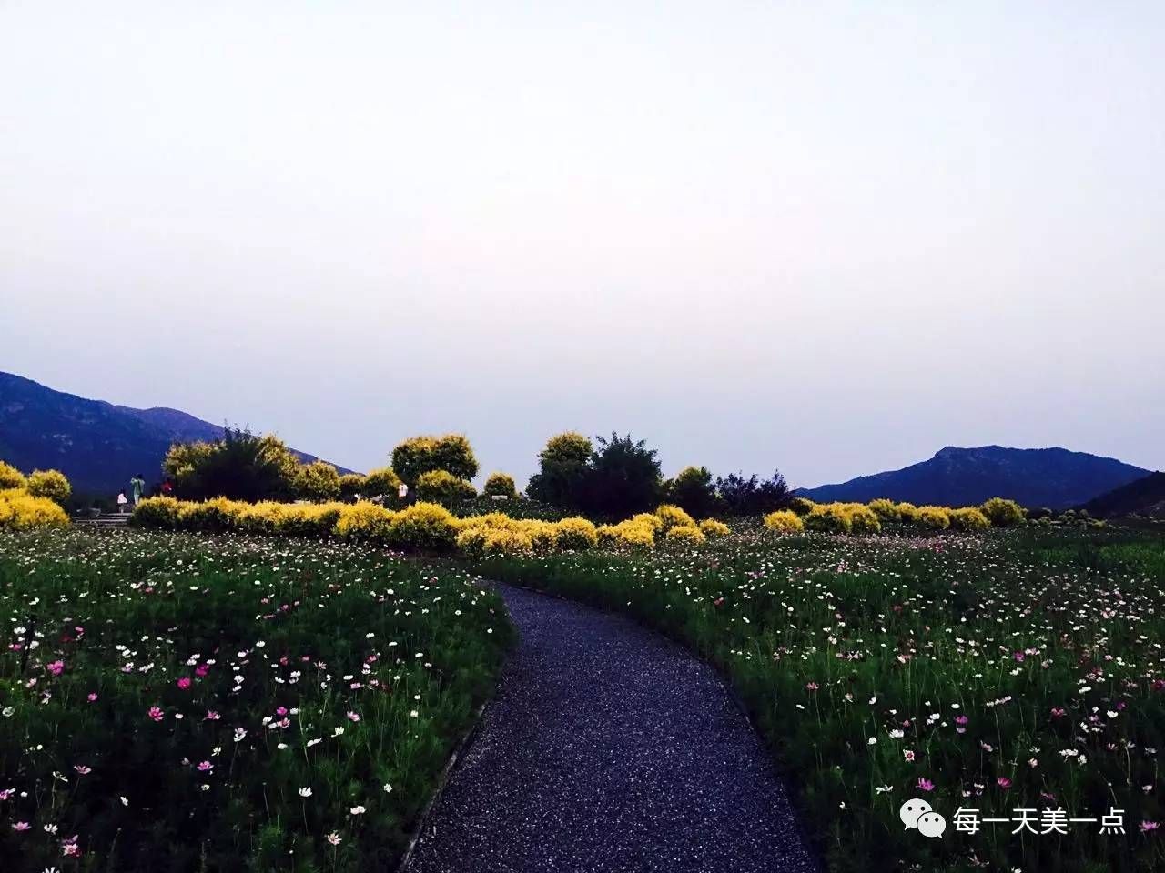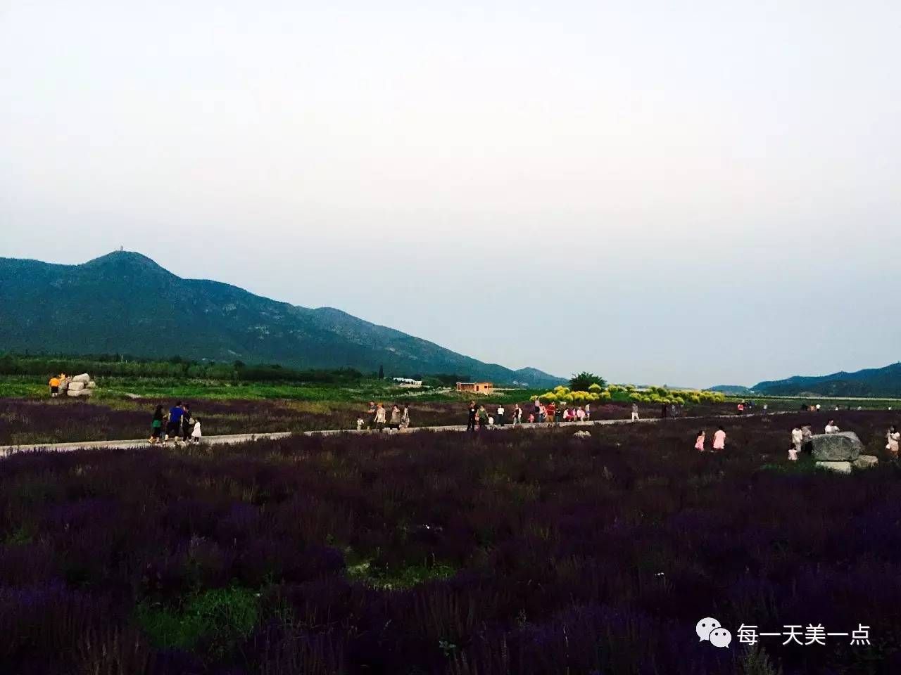 初夏的傍晚,七孔桥下的花海里,游玩的人比正午的时候还多。薰衣草正值花期,格桑花也已经开了,不知名字的植物顶着满树的鹅黄。菊花要到秋天才开。