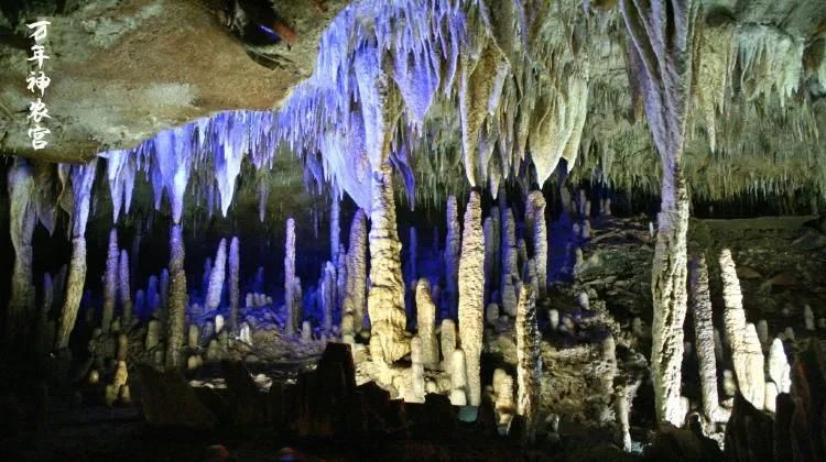 神农宫,由喀斯特地貌的溶洞和地下河组成,位于江西万年、弋阳、乐平三县(市)交界处万年大源盆地的黄天峰下。溶洞钟乳石质地纯净,色泽如玉,形态各异,蔚为壮观,被中国地质科学院列为中国洞穴景观评价一等奖。