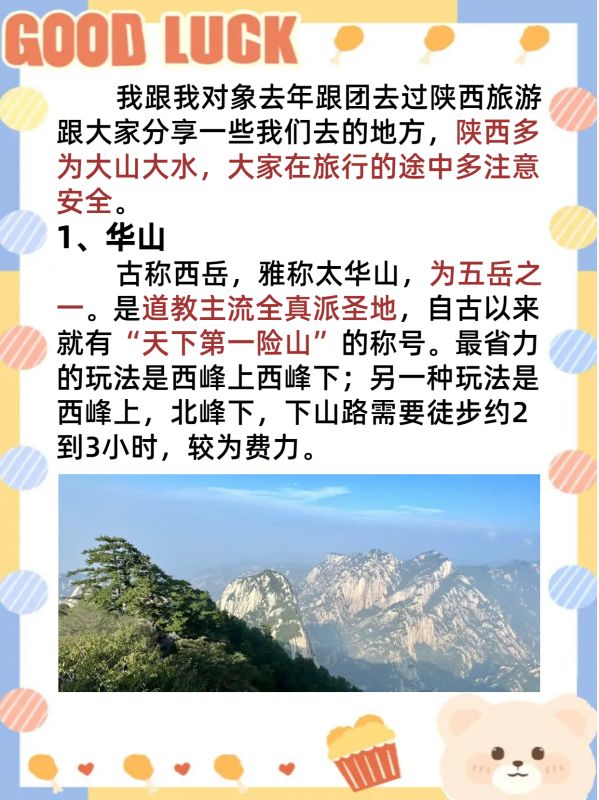 我跟我对象去年跟团去过陕西旅游,跟大家分享一些我们去的地方,陕西多为大山大水,大家在旅行的途中多注意安全。