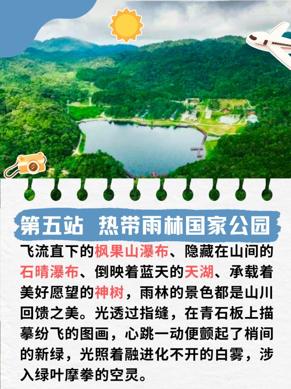 吊罗山园区面积496.3平方公里,森林覆盖率达到96.26%。热带雨林公园植被丰富,最高达每立方厘米12.5万个负氧离子,是天然的森林氧吧! 去拥抱一棵树,拥抱一场绿色的梦。飞流直下的枫果山瀑布、隐藏在山间的石晴瀑布、倒映着蓝天的天湖、承载着美好愿望的神树,雨林的景色都是山川回馈之美。光透过指缝,在青石板上描摹纷飞的图画,心跳一动便颤起了梢间的新绿,光照着融进化不开的白雾,涉入绿叶摩拳的空灵。在林中追寻风的踪迹,听雨滴坠落的声音,扑进自然的气息,感受灵魂的颤栗。森林之中,一棵一棵的树像正在祈祷什么一样,如此挺拔。细细的树梢前端,瞬息之间,有最敏锐的光。四时不同,木叶永存在林中,觉得灵魂都变得虔诚了,永远喜欢这片自然!