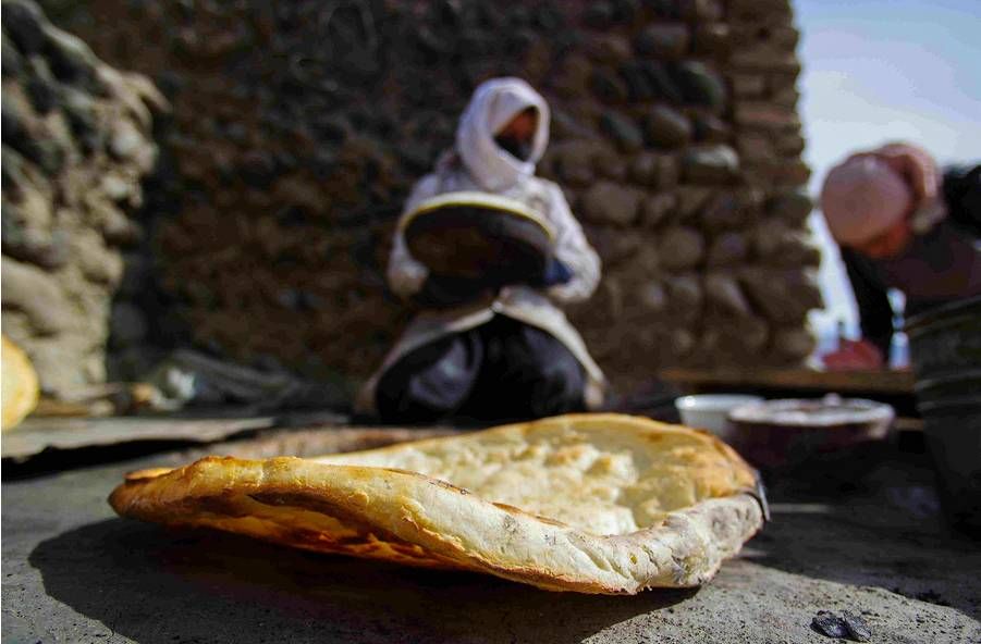 吃一口馕,尽显美味。