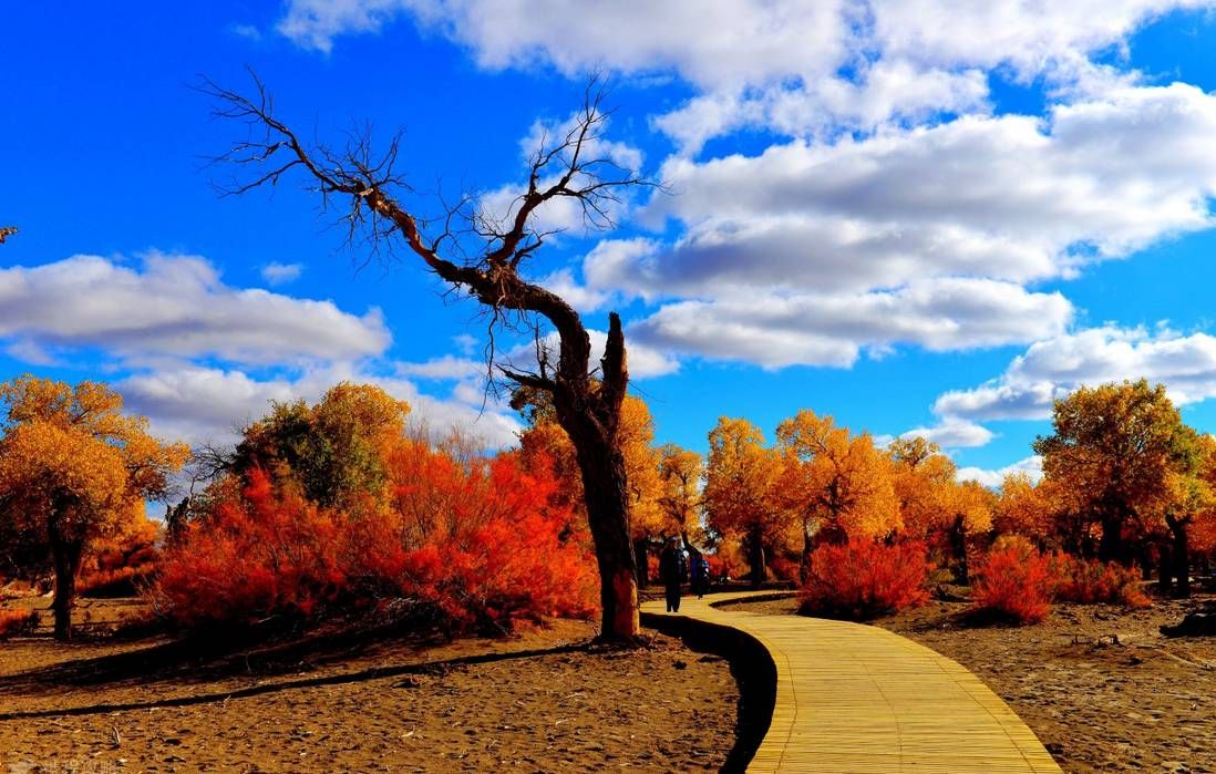 漫步于塔里木胡杨林公园内,你会发现这里约有弯道220处,堪称世界上弯道最多的景区道路。