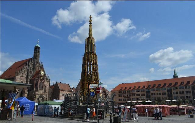 集市广场(Nurnberger Hauptmarkt)是纽伦堡最重要的广场,这也是著名的纽伦堡圣诞集市的举办地点。如果赶上圣诞集市,广场上人山人海,商品琳琅满目,还有各种美食。