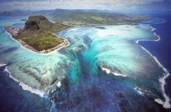 视觉错觉构成的水下奇观,坐直升机从一个特定的视点看会觉得海面下有一个瀑布,全国际绝无仅有。其实就是海水变深发生的颜色突变算了,可是可巧构成了3D立体画的感觉。