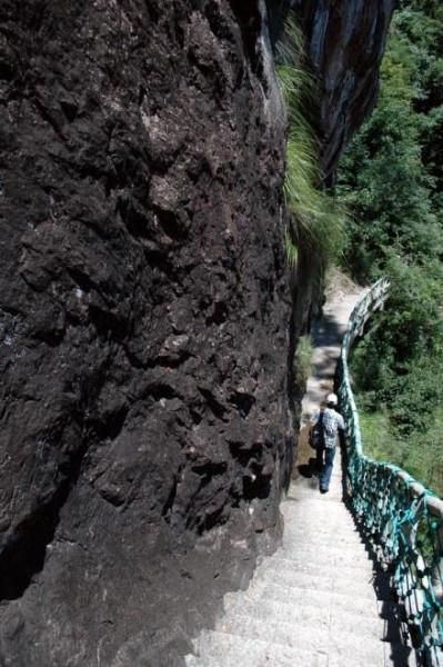 沿着山间小路顺势而下,神龙谷的山间小路还挺有特色的啊,路都显得特别窄,而且紧靠崖壁的,旁边就是竹制的栏杆,恐怖倒是不恐怖,就是对于恐高的我来说,往下看有点晕就是了,不过神龙谷不知道是不是因为没什么人来还是旅游淡季的原因,整个景区倒显得比较宁静跟干净呢