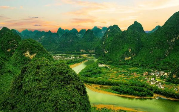 桂林以其奇妙的石灰岩风光而闻名。这是一座坐落在喀斯特山脉中的城市。风景如画的漓江,带你进入一幅缥缈的水墨画。夏季,乘船游览漓江,景色清澈,江风轻柔。