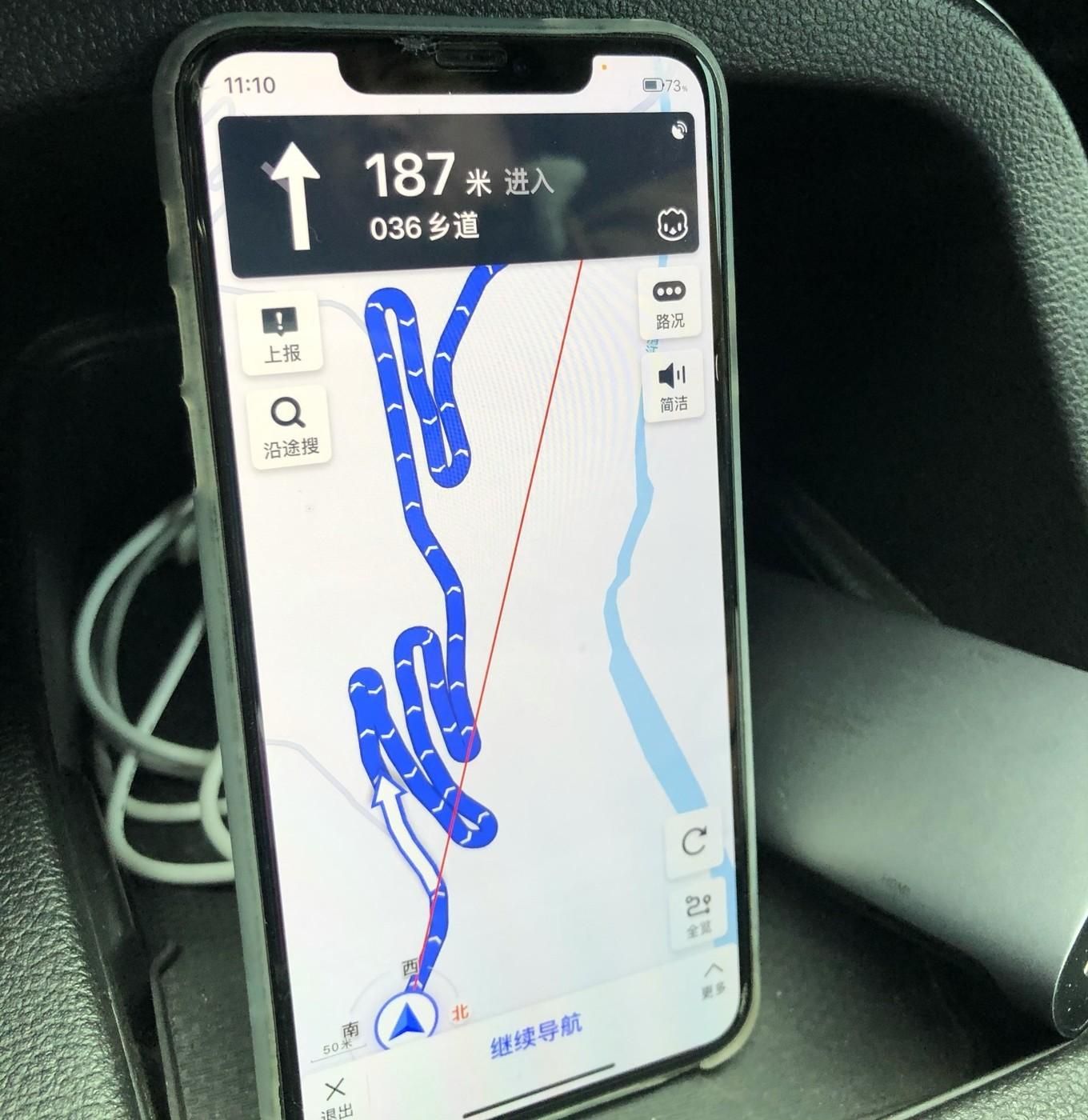 因为古河床的入口在山腰,导航上显示此处的弯全是180度的急弯。