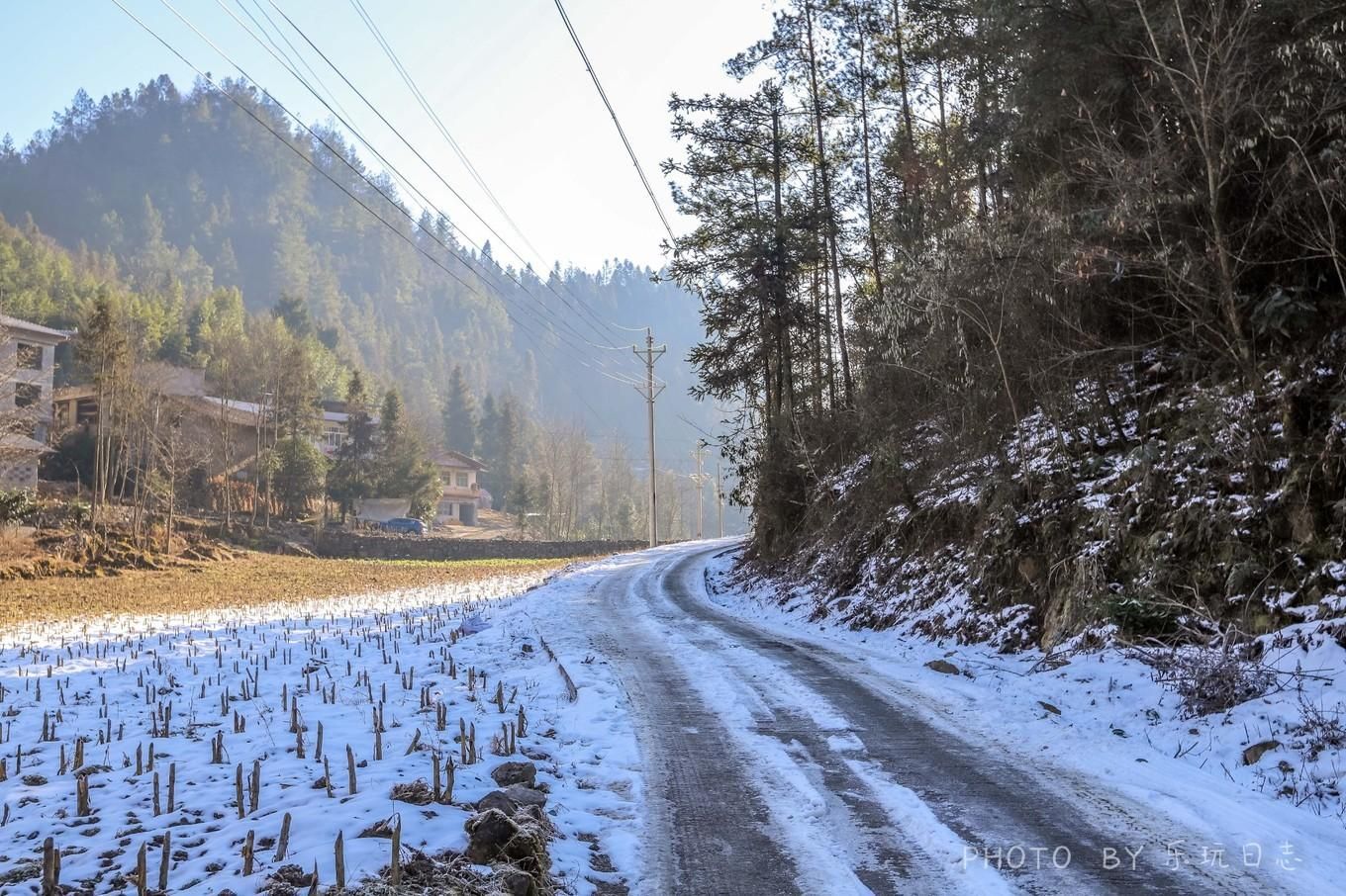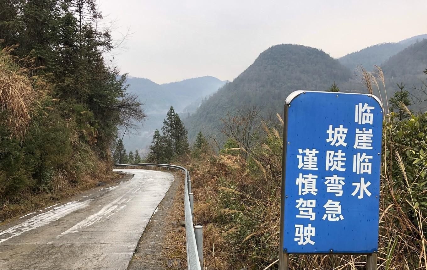 从318公路转入乡村小道后,道路就越来越窄,并且上面路面还结冰。
