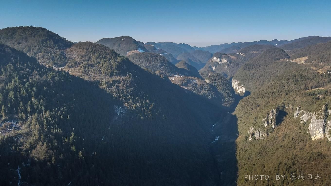 无人机飞到山顶,看周围的环境,全是一座接一座的大山丘,而清江就从这些密集的群山中,流过。