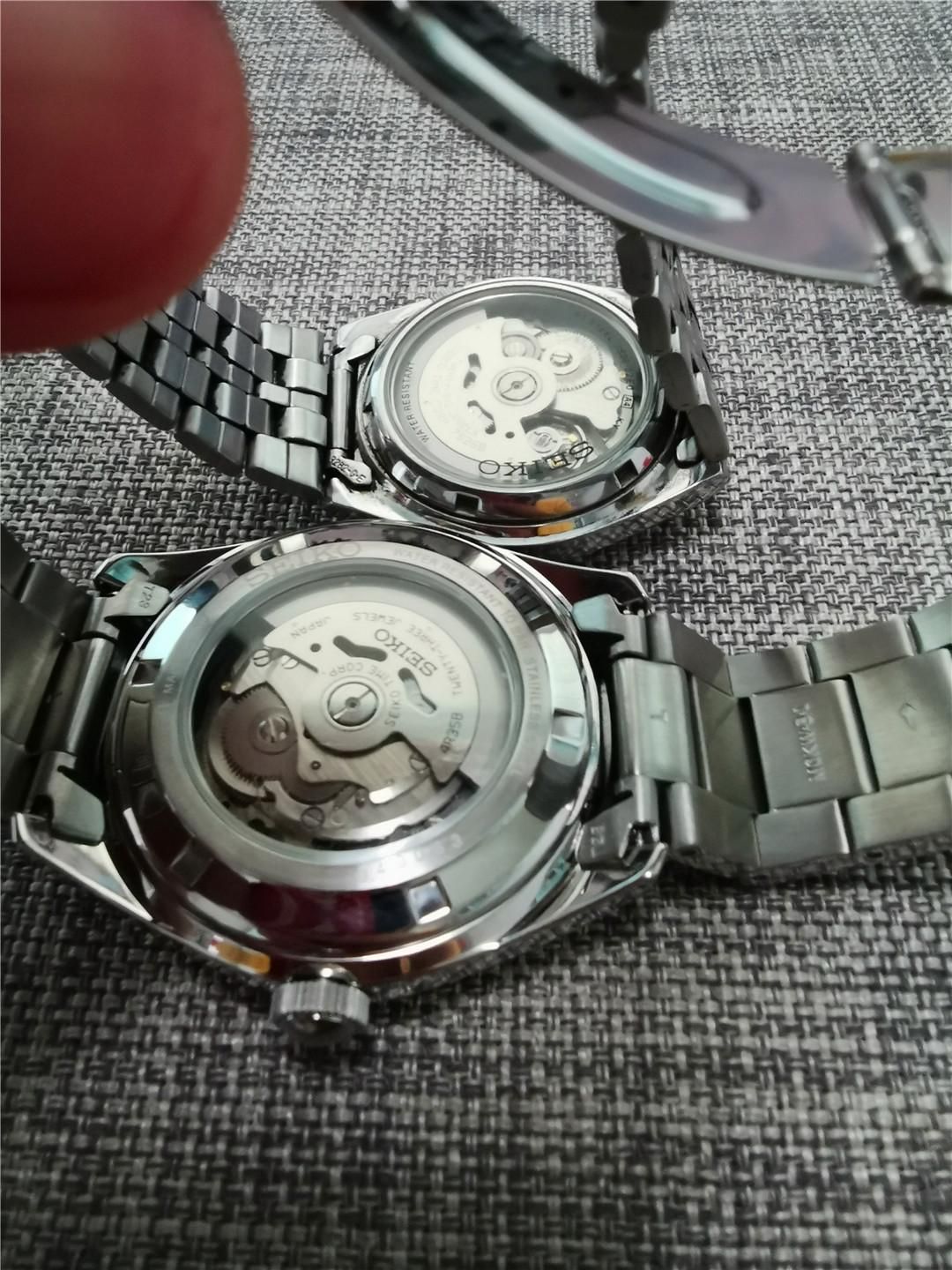 大厂精品,做工用料果然不凡,表带的针扣非常厚,不锈钢材质,厚度我量了一下,1mm还多。表带橡胶材质,柔和厚实,2mm厚。底壳是实现200米防水的重要部分,也是和皮肤天天接触的部位。这款表底壳用料依旧厚实,同表带针扣一样,也达到1mm以上。底壳上印有表的各种信息,由四枚螺丝固定。这块金属天天接触,手腕并没有过敏不适的情况。