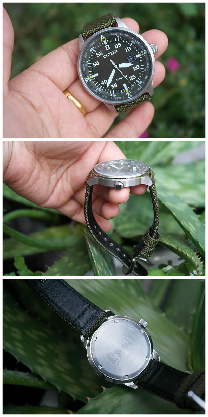磨砂表盘,防止反光,夜光指针,在夜间也能轻松看时间,军绿色底色,搭配白色指针,给人清爽感。指针走时准确,基本没有声音,表盘还有日期显示,功能足够。光能表的优点就是电池寿命长,大概能用15-20年,充电很方便,佩戴在手上,在阳光下就能完成充电过程,只要能接触到阳光,完全不要担心手表会没电,充满电手表能使用240天以上,真的是超级方便。