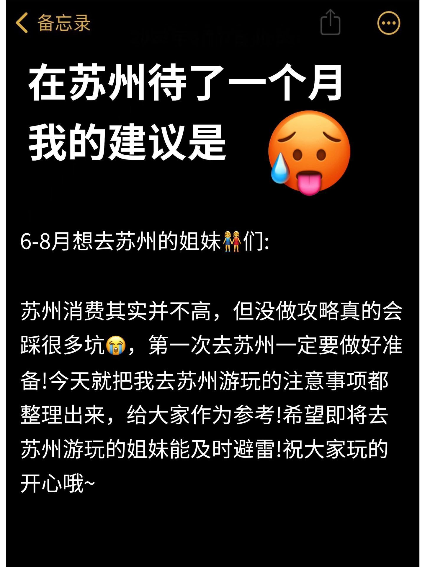 如果你计划在6-8月份去苏州旅游,以下是一些避坑攻略,涵盖住宿、美食、景点和游玩建议等内容,非常实用!记得收藏起来吧!