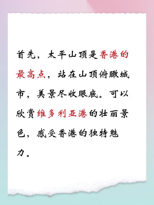 总之,香港太平山顶是一个值得一游的地方。在这里,你可以领略到香港的独特魅力,品尝到各种美食,还可以感受到云端之上的奇妙体验。快带上你的小伙伴们一起来太平山顶吧!