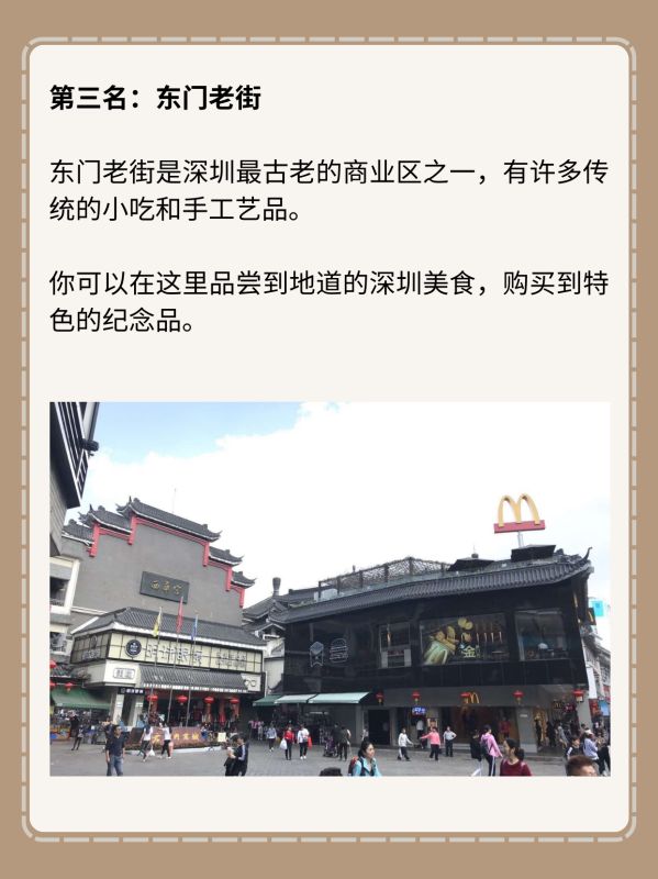 东门老街是深圳最古老的商业区之一,有许多传统的小吃和手工艺品。