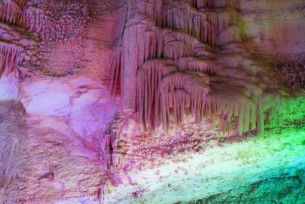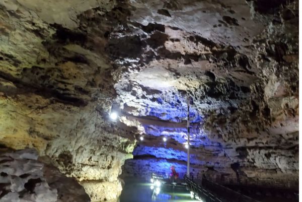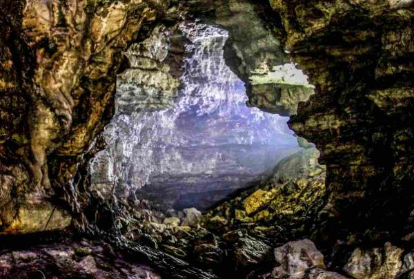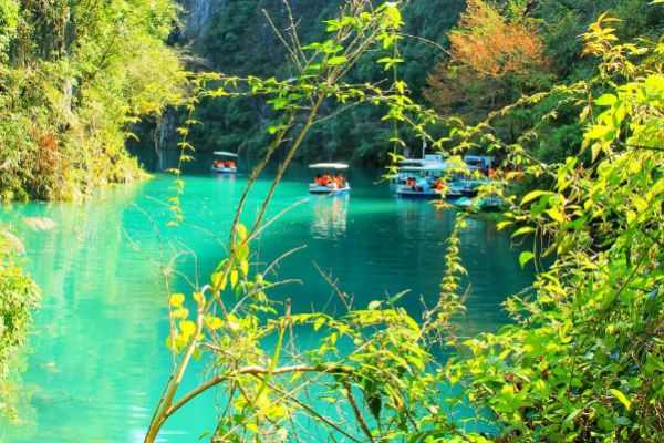 双河谷由地下河谷、天坑、石膏洞组成,拥有丰富的地下岩溶地貌,国内地下河谷、地下梯田奇观,并称为双河谷四绝,地下河谷,石壁造型多样、纹路美艳,河水碧绿深幽,仿佛世间伟大的艺术品。