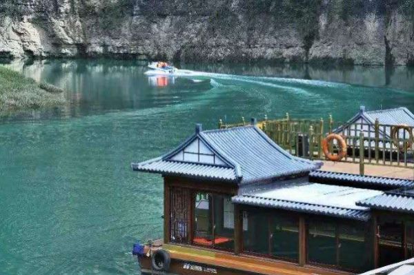清溪峡游船观光,青山绿水、绝壁悬瀑,大自然巧夺天工、和谐天成,造就了清溪湖臻美的喀斯特溶岩地貌峡谷画卷,泛舟湖上,见鸳鸯戏水、听鸟语虫鸣,清风徐来,水波不兴。