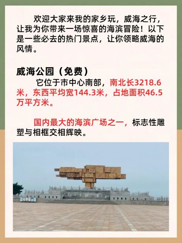 欢迎大家来我的家乡玩,威海之行,让我为你带来一场惊喜的海滨冒险!以下是一些必去的热门景点,让你领略威海的风情。