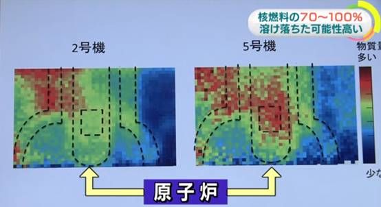 然后,2015年9月,名古屋大学的专家使用μ介子探测器,第一次从图像上论证了2号机组内70%以上的核燃料可能已经熔融的推定。