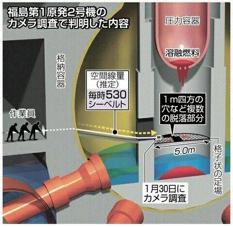 早在2011年6月8日,就有新闻报道称,日本政府的原子能灾害对策总部提交国际原子能机构(IAEA)的报告就指出,1至3号机组燃料棒熔毁后坠落,一部分可能已通过压力容器上的漏洞堆积在了安全壳的底部,发生了“熔穿”。说的情况就和昨天大家看到的新闻描述是一样的。