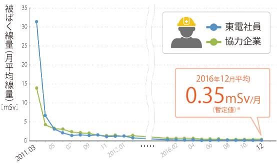 福岛核电站工作人员每年接受的辐射剂量变化趋势