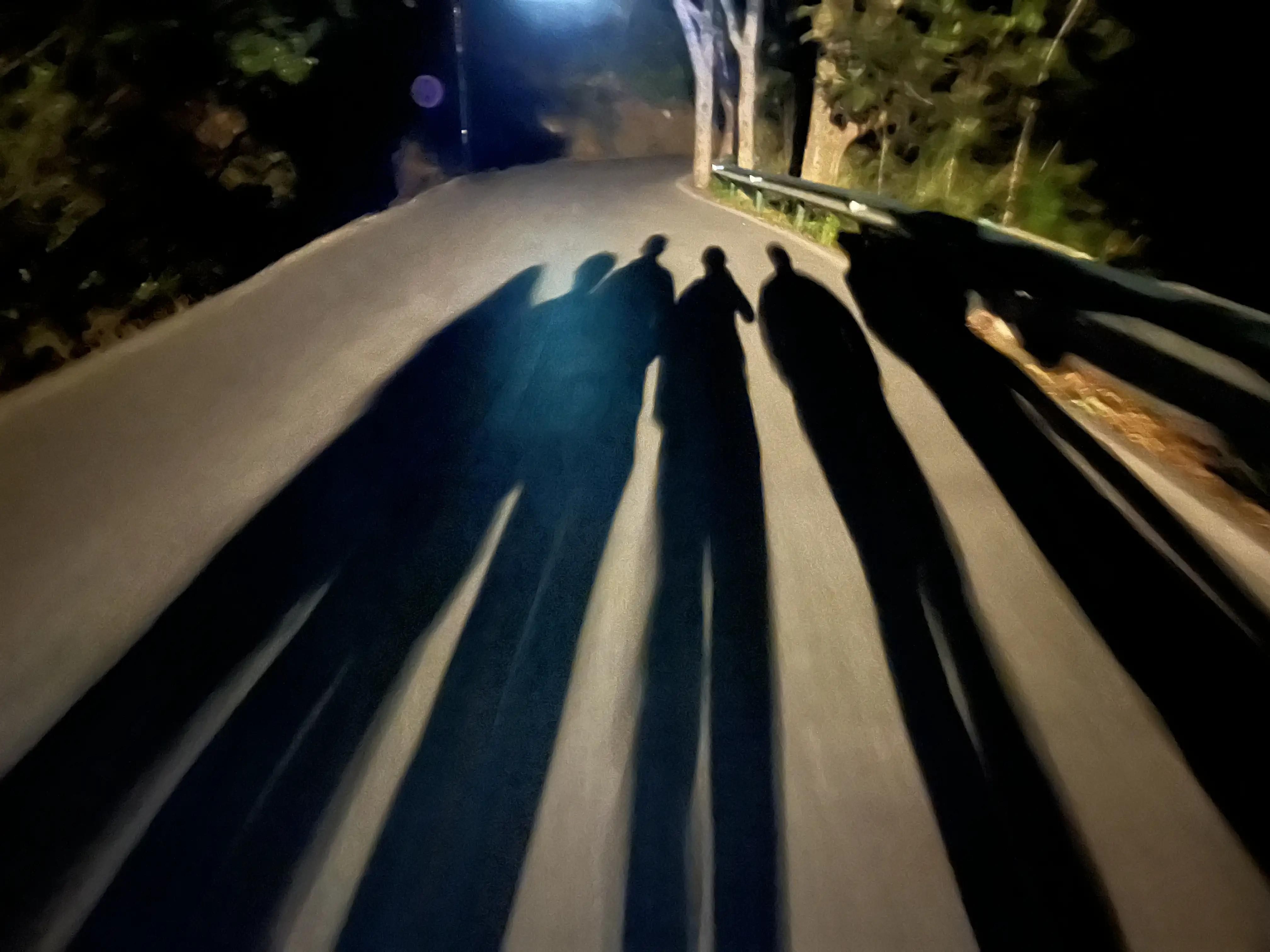 我们一行5人,人手一只手电筒。开始了盘山登山之路。晚上建议不走台阶小路,预防碰到蛇之类的动物。开始一路欢歌笑语,激昂斗志。看天上最亮的星星一路相随。