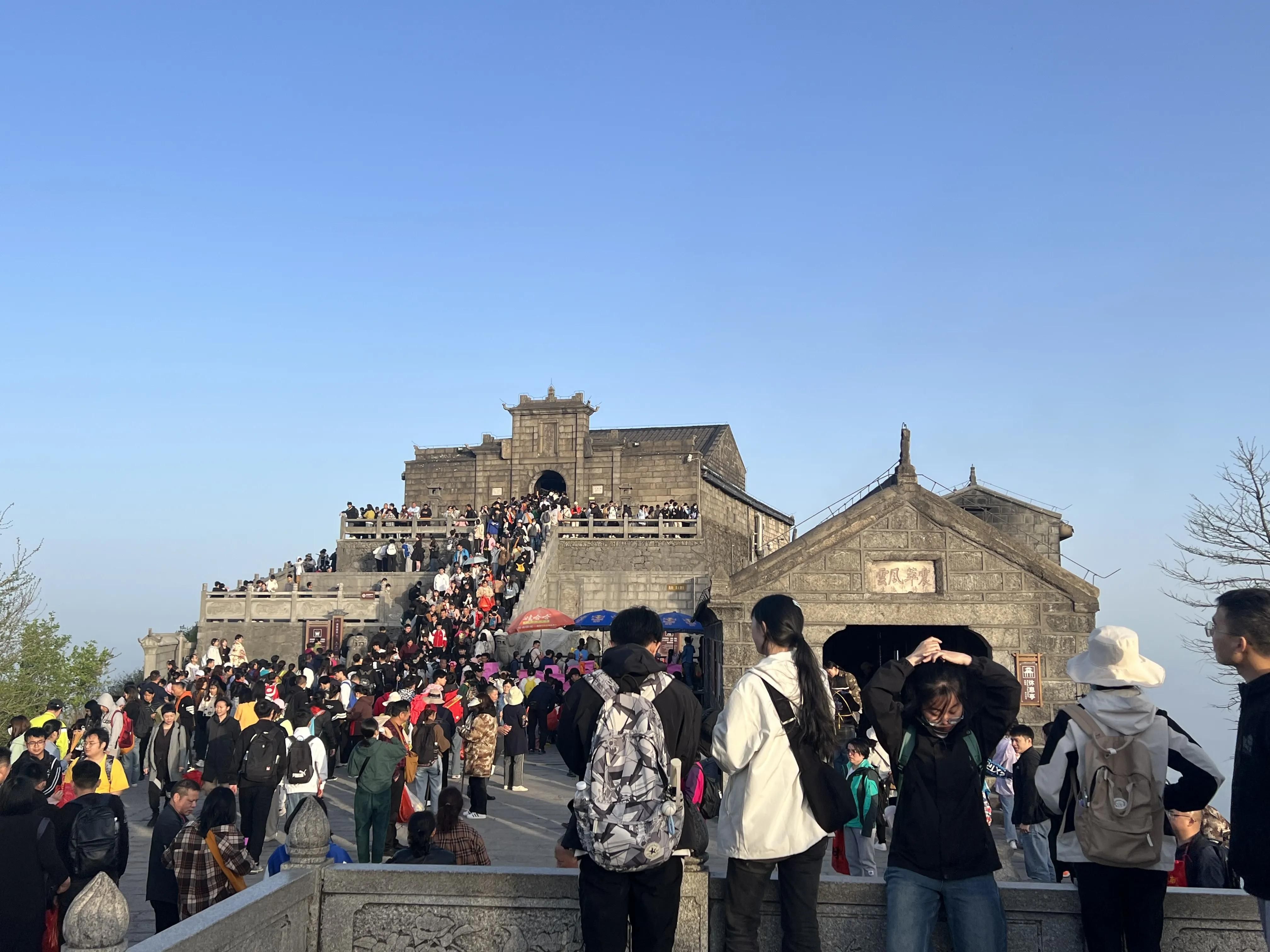因为短暂,才更加美好,更加珍惜吧。十分钟后,我们继续往上10几分钟登顶祝融峰。这个时候天已大亮,我们的精神也恢复了许多。祝融峰的道路已经挤满了香客,此时听到诵经的声音是如此的美妙。