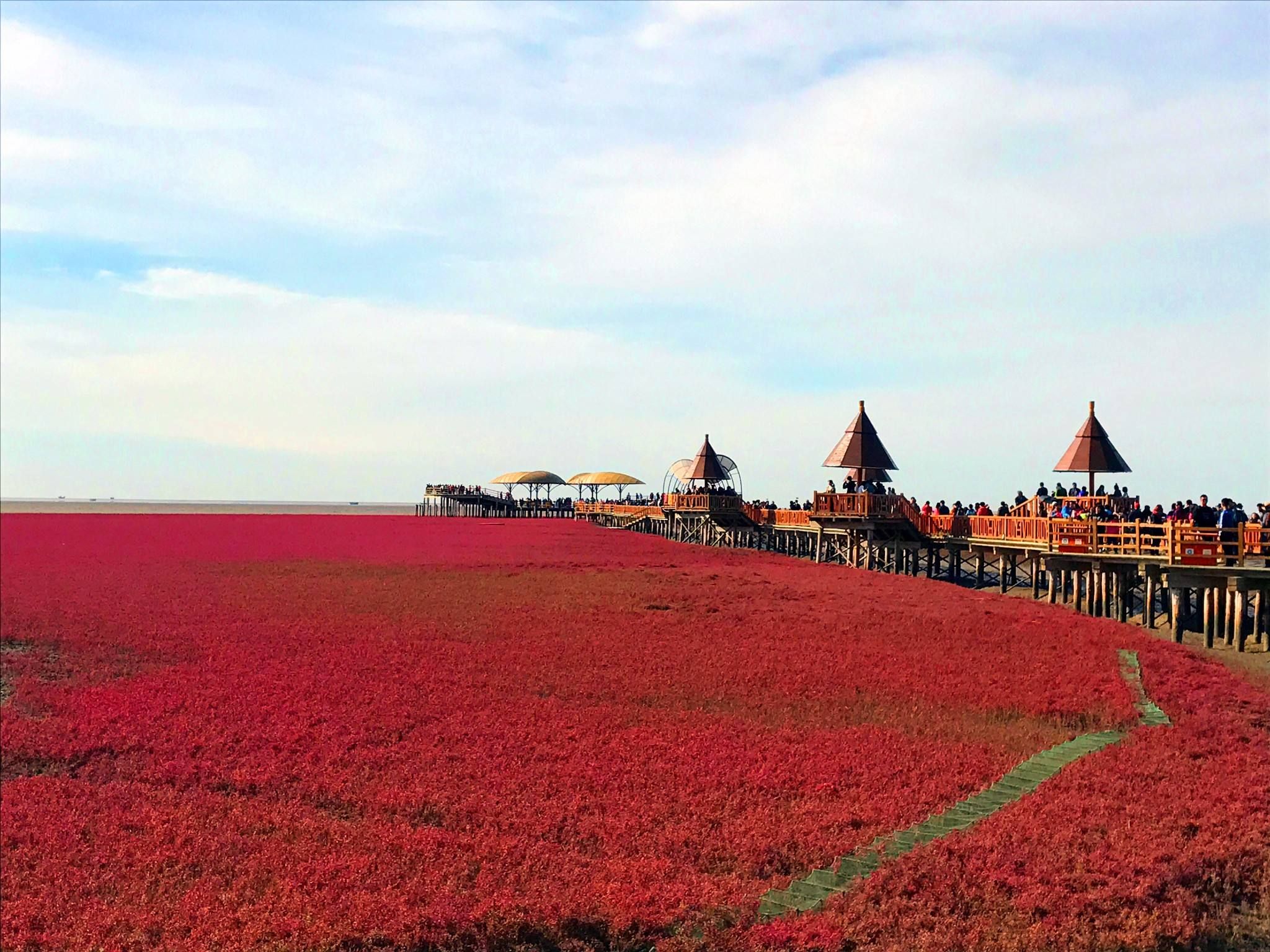 位于辽宁盘锦市,世界罕见的芦苇荡生态旅游区,也是丹顶鹤主要的繁殖地区。这里的红海滩特色,相当独特,一望无际的鲜红,背景加上芦苇、水鸟、碧海蓝天,让人观之难忘。