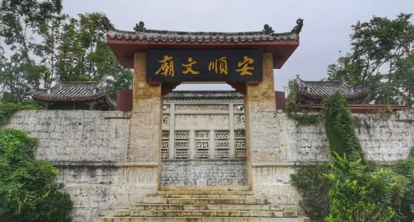 安顺文庙又名“府学宫”,坐落于贵州省安顺市东北之黉学坝,占地约8000平方米,是一座规模宏大、布局严谨、庄严典雅的古建筑群。文庙始建于明代洪武初年(约公元1368年),天启二年(公元1622年)毁于兵燹,天启上年(1624年)重建。后经清康熙七年(1668年)、康熙五十五年(1716年)、道光十七年(1837年)几次增建、修复,臻于完备,现存建筑22处。1982年,贵州省人民政府核定公布为省级文物保护单位。文庙前有一座照壁,形如巨大门屏。文庙进门处有“礼门”、“义路”,分别为垂花门。“礼门”、“义路”间,耸立一堵透雕石人、石花墙,称“宫墙”,上方横额书刻“宫墙数仞”四字,宫墙左侧脚下,竖一块条形石碑,刻“文武官员军民人等在此下轿马”称为“下马碑”。府文庙共有四进。第一进分上下两院。除第四进不复存在外,其余三进基本完好。由于就坡而建,四进建筑物也随之升高。入得文庙正门至第一院落,内有半月形水池,称为泮池。池上横跨一座三孔石拱小桥,第个桥孔上方嵌有石雕龙首或狮头,各各俯视水面。在古代,凡中秀才得从石桥上过,名“游泮”。过泮池桥,可见棂星门,那是一座颇雄壮的石雕牌坊,两侧还有称为节孝祠和名宦祠的建筑,硬山顶式。