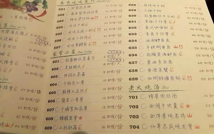 这家的菜单好有特色:标注招牌精选、镇店之宝、传承经典,辣与不辣,菜单上还画上闹钟,这是提醒你这道菜上的比较慢。