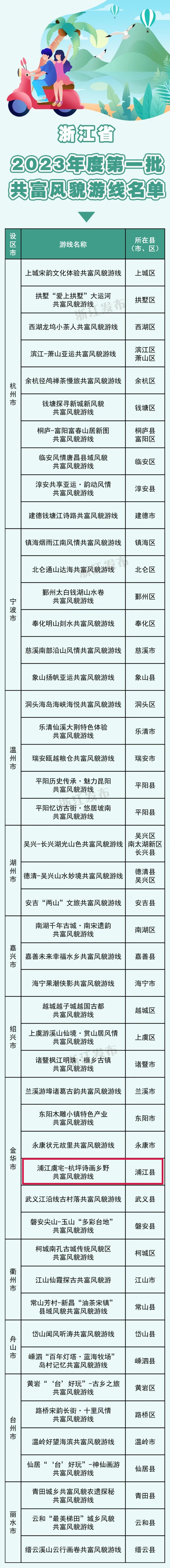 近日,省住房和城乡建设厅、省文化和旅游厅、省总工会、省城乡风貌整治提升工作专班办公室联合公布浙江省2023年度第一批共富风貌游线名单,全省共48条线路入选,浦江就有一条入选。城乡风貌整治提升成果正成为群众可游可赏的共富体验。