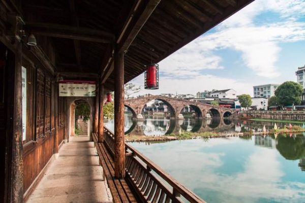 古镇两侧的建筑物,都是依河而建,其中包括民居跟商铺,为了让人们在走累的情况下,能够找个歇脚的地方,所以就在靠河位置处,修建了一条长长的美人靠。即使在下雨天,在此避雨,也是完全不会担心会被雨水淋湿的,设计风格惟妙惟肖。直到现在仍能看到游客们在美人靠上赏景,一面在这里歇息,一面还能体会一下,古代时,商人在此来来往往忙碌的身影,似乎还能丰富游客们的想象力,会让你多一份对于古镇的热爱之情。