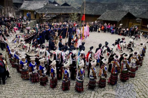 下午乘车约1小时,赴原生态的郎德苗寨,体验苗族最高级别的迎宾礼仪12道拦门酒,欣赏传统歌舞表演。