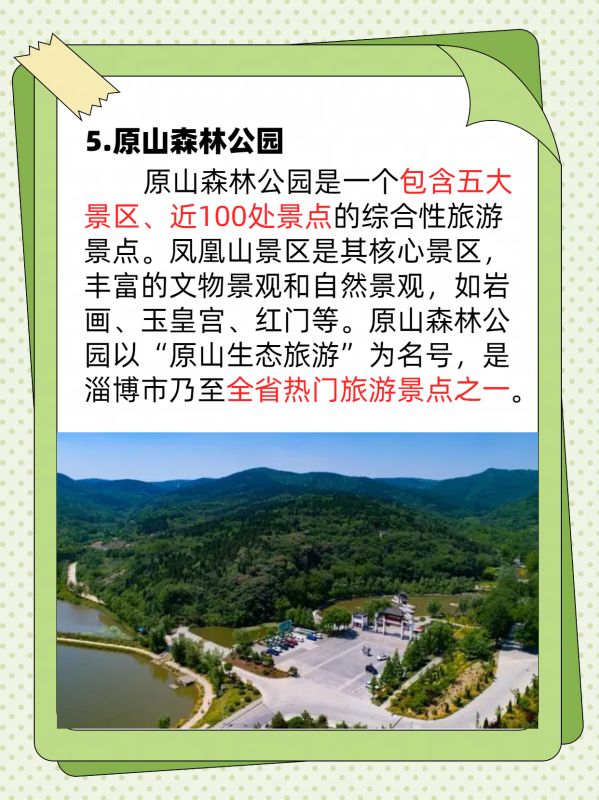 原山森林公园是一个包含五大景区、近100处景点的综合性旅游景点。凤凰山景区是其核心景区,丰富的文物景观和自然景观,如岩画、玉皇宫、红门等。原山森林公园以“原山生态旅游”为名号,是淄博市乃至全省热门旅游景点之一。