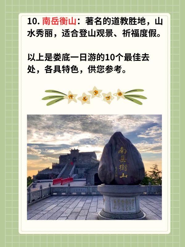 我认为这些景点各具特色,一日游可根据个人兴趣和时间安排进行选择。在娄底一日游中,您将能感受到美丽的自然风光和丰富的历史文化。